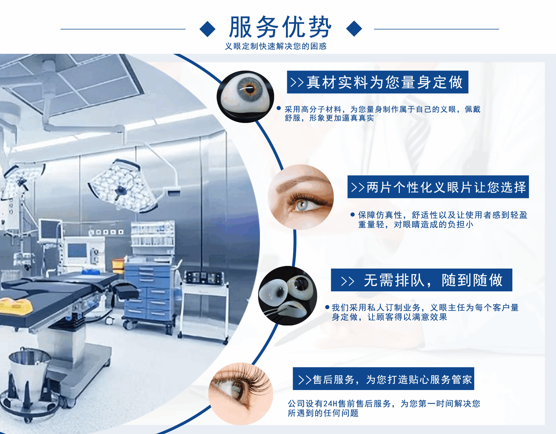 正目醫(yī)療科技有限公司致力于為用戶提供假眼,在哪里可以定制義眼,義眼哪家好,假眼價(jià)格,義眼價(jià)格,義眼費(fèi)用,義眼公司,是集義眼定制、保養(yǎng)、咨詢?yōu)橐惑w的綜合性義眼定制企業(yè)。  獨(dú)創(chuàng)的義眼工藝結(jié)構(gòu),根據(jù)仿生物學(xué)原理,采用進(jìn)口醫(yī)用植入材料:高分子材料、無毒素、性能穩(wěn)定、堅(jiān)固耐用)、聚甲基丙乙烯阝-羥乙酯HEMA材料(軟性親水性材料),結(jié)合獨(dú)特的義眼個(gè)性化佩戴技術(shù),按佩戴者健眼的形態(tài)、角膜、虹膜、及瞳孔的大小、色澤、血管紋理和脂肪分布,設(shè)計(jì)制作。擁有超薄、質(zhì)輕、光滑、親水透氧、佩戴舒適和高逼真的特點(diǎn)。為保證佩戴效...